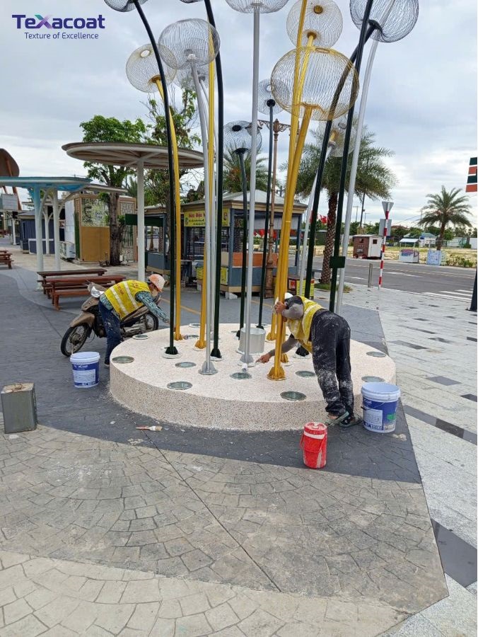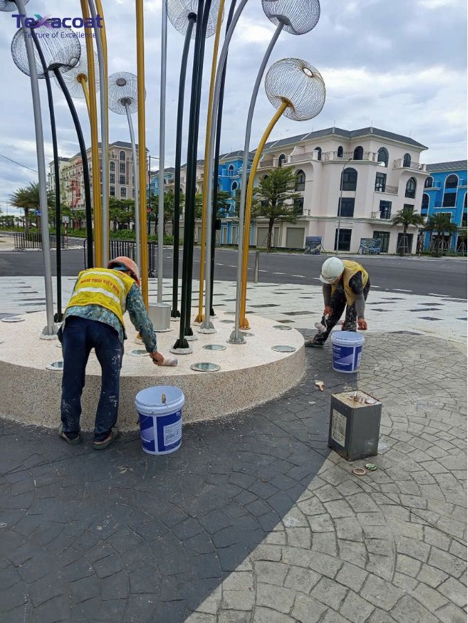 Thi công sơn đá tại các vị trí này giúp làm nổi bật hình khối, tăng cảm giác chắc chắn và tạo sự phân tách rõ ràng giữa các mảng kiến trúc. Thông thường, các mảng cột hoặc trụ sẽ được xử lý bằng màu sơn đá đậm hơn hoặc có độ tương phản nhẹ so với nền tường chính để tạo hiệu ứng thẩm mỹ rõ ràng nhưng vẫn hài hòa.
