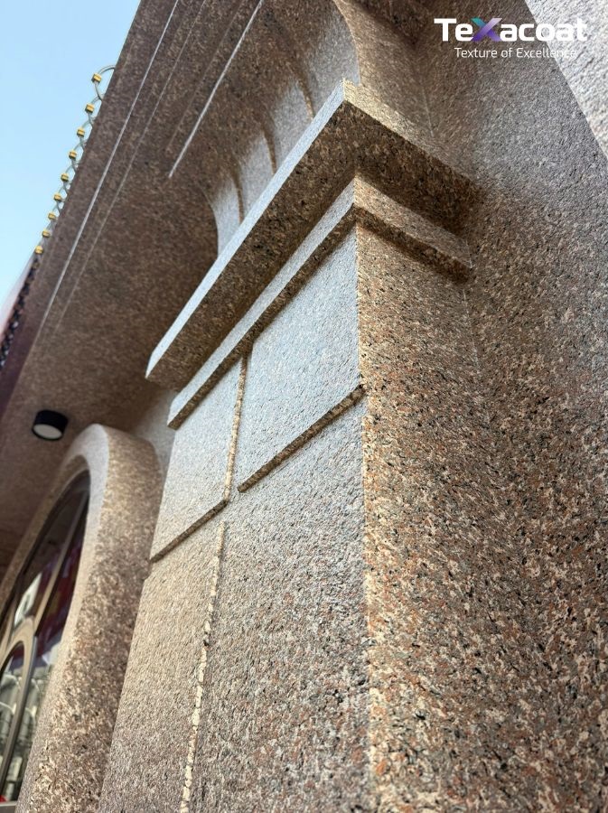 Với nhà phố, biệt thự, khách sạn hay showroom, mặt tiền luôn là vị trí thi công sơn đá mang lại hiệu quả rõ rệt nhất cả về công năng lẫn thẩm mỹ.