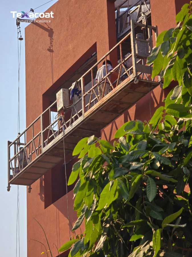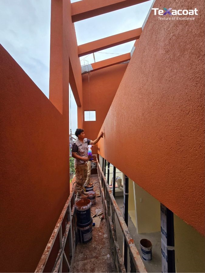Khác với nội thất, vữa hiệu ứng dùng cho ngoại thất đòi hỏi khả năng kháng kiềm, chống thấm và bền màu trước tác động thời tiết. Vì vậy, hệ sản phẩm dành cho ngoại thất thường được bổ sung lớp phủ bảo vệ để tăng tuổi thọ bề mặt.