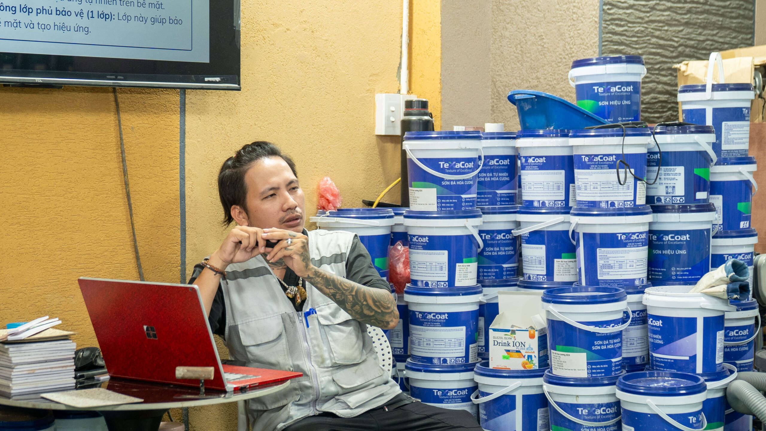 Không chỉ dừng ở thao tác kỹ thuật, học viên còn được truyền cảm hứng về cách “thổi hồn” vào bề mặt – biến lớp sơn trở thành một phần của kiến trúc nghệ thuật, chứ không chỉ là lớp hoàn thiện bên ngoài.