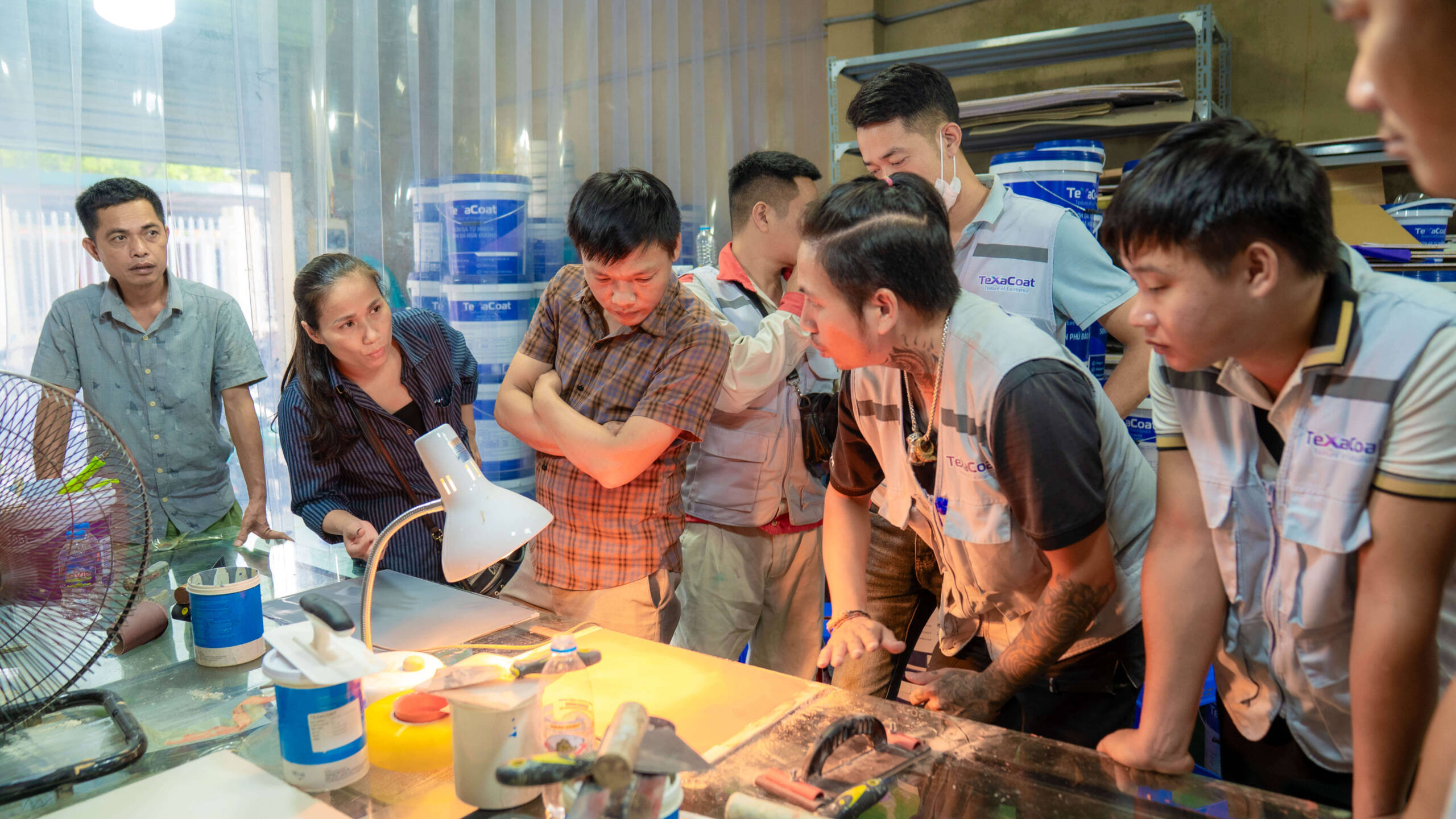 Trong tháng 10/2025, TexaCoat tiếp tục tổ chức khóa đào tạo sơn hiệu ứng giúp nâng cao tay nghề thợ sơn, giúp các học viên chạm đến đam mê, khám phá chiều sâu nghề nghiệp và tìm thấy bản sắc riêng trong từng lớp sơn, từng hiệu ứng bề mặt.