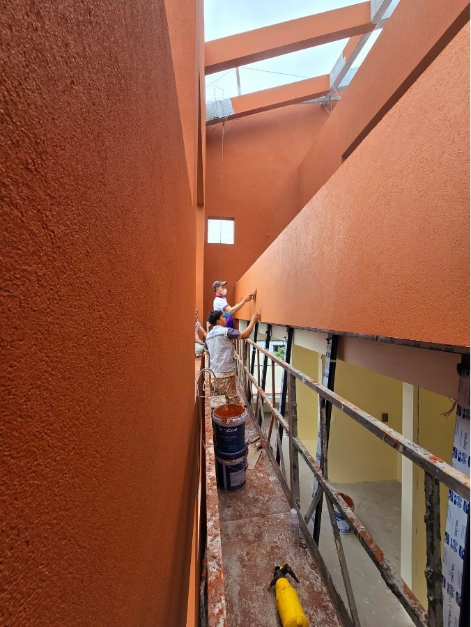 Thi công nhiều lớp sơn: Bao gồm lớp sơn lót kháng kiềm, lớp nền tạo màu, lớp hiệu ứng và lớp phủ bảo vệ. Mỗi lớp đều cần thời gian khô riêng biệt, thông thường ít nhất 4–6 giờ, thậm chí 12–24 giờ với bề mặt dày.