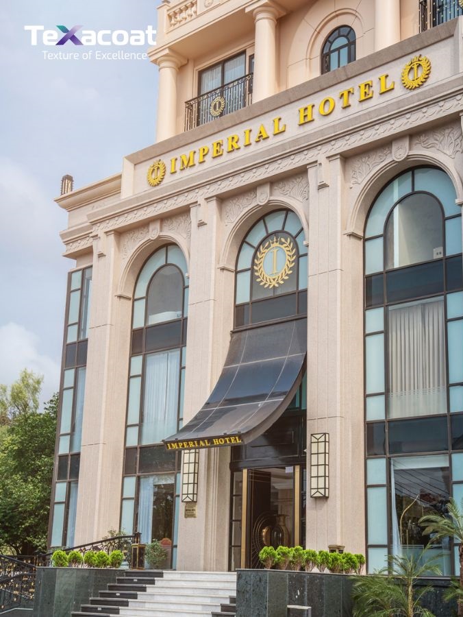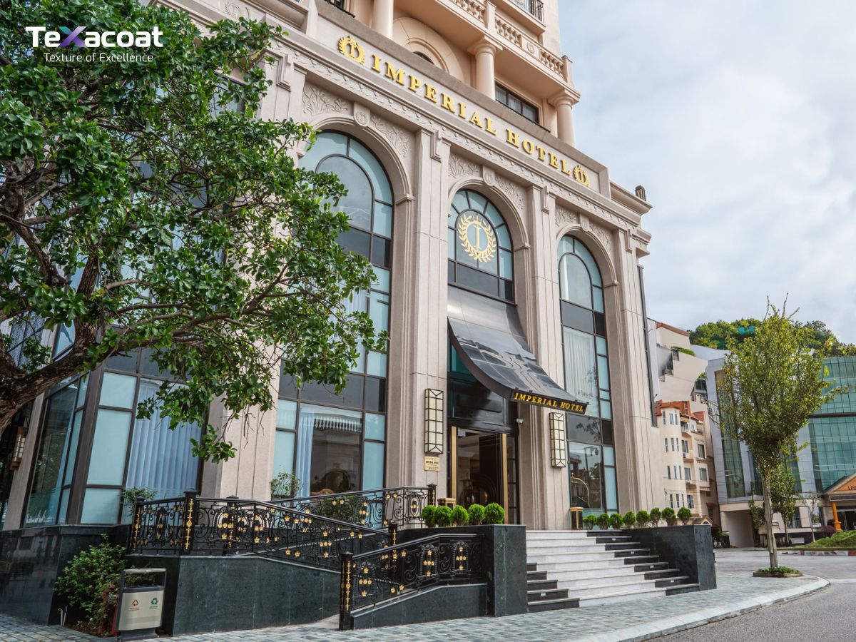 Với phong cách kiến trúc cổ điển sang trọng, mỗi chi tiết của khách sạn Imperial Lạng Sơn đều được chăm chút kỹ lưỡng nhằm tạo nên tổng thể đồng nhất và bền vững theo thời gian. Trong đó, lớp sơn đá hoa cương 3DX đóng vai trò như “lớp áo giáp bảo vệ” của công trình – vừa đảm bảo yếu tố thẩm mỹ cao, vừa mang lại hiệu năng bảo vệ vượt trội cho toàn bộ bề mặt ngoại thất.