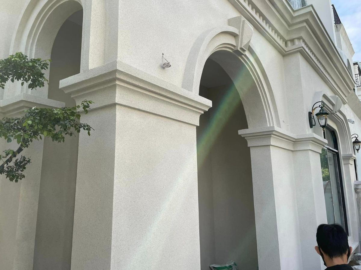So với việc ốp đá thật, sơn đá cho phép xử lý linh hoạt ở nhiều vị trí như cột trụ, mặt tiền hay các chi tiết bo góc mà không bị giới hạn về kích thước vật liệu. Đây là yếu tố đặc biệt phù hợp với các công trình biệt thự nghỉ dưỡng hoặc nhà phố cần tạo điểm nhấn kiến trúc.